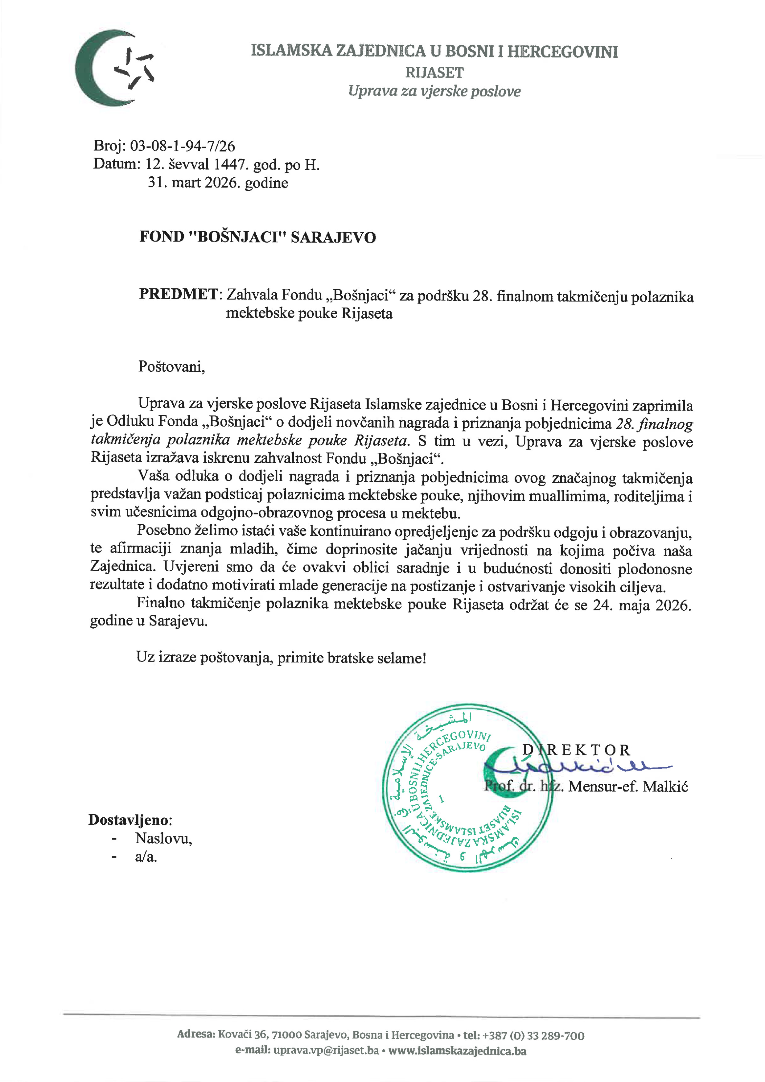 IZ u BiH - Vakufska direkcija Sarajevo
